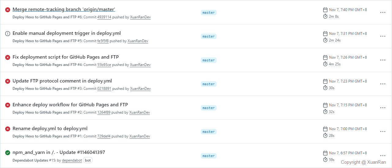 gh-pages 分支,实现 GitHub Pages 发布(记得修改XuanRanDev.github.io这个值为你想要部署的仓库名称)。